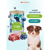 Полноценный влажный корм FLORIDA для щенков всех пород с ягненком и черникой.