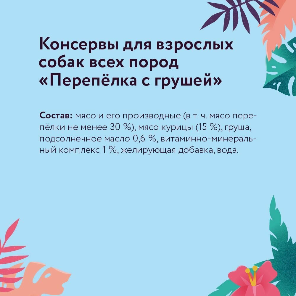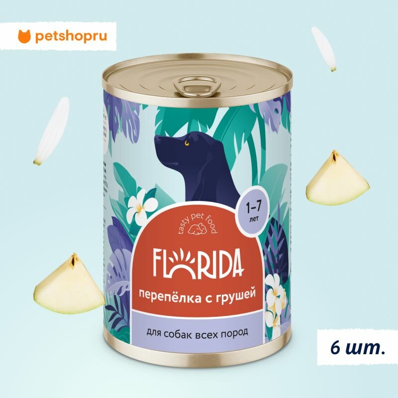 FLORIDA Консервы для собак «Перепёлка с грушей», Влажный корм, 6 шт по 400 г: сравнение цен, характеристики, фото, актуальное наличие и цены.