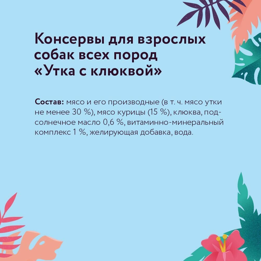 Купить FLORIDA Консервы для собак «Утка с клюквой», Влажный корм, 6 шт по 400 г с доставкой по всей России. FLORIDA Консервы для собак «Утка с клюквой», Влажный корм, 6 шт по 400 г: сравнение цен, характеристики, фото, актуальное наличие и цены.