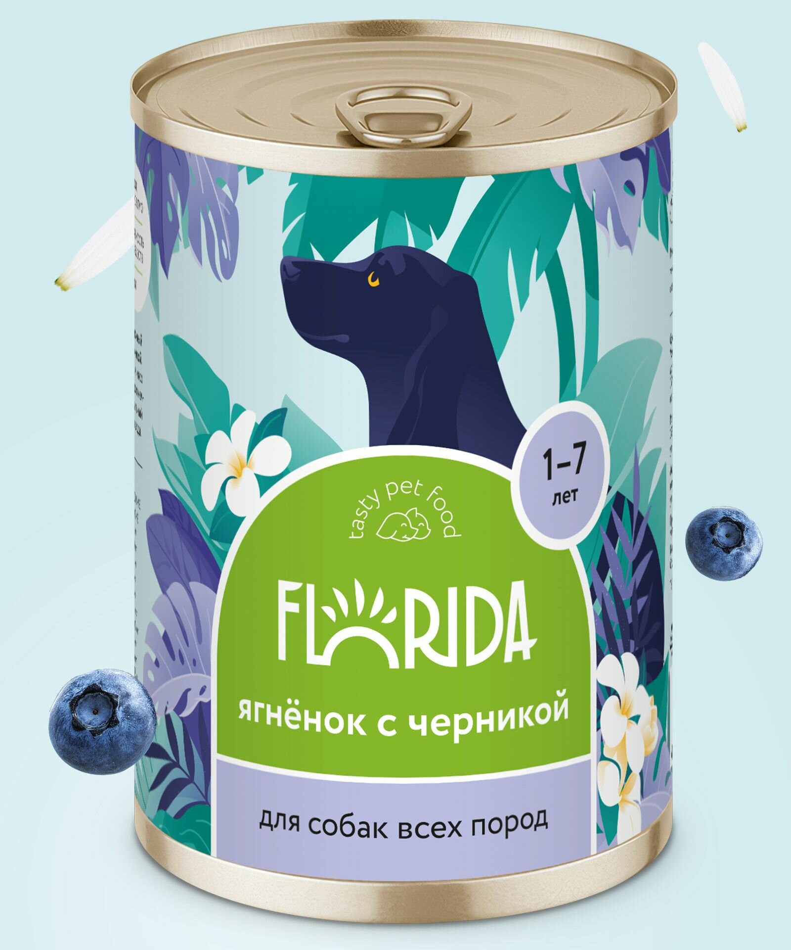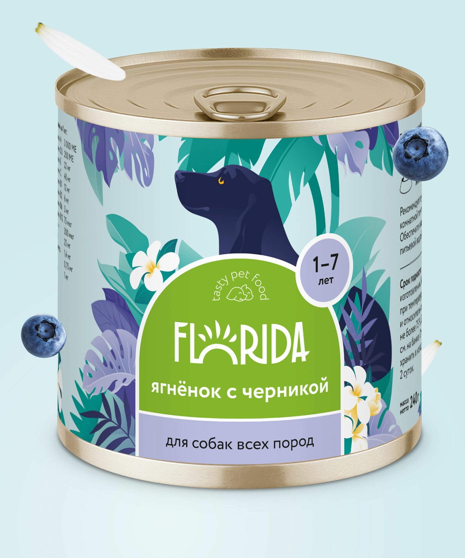 FLORIDA Консервы для собак «Ягнёнок с черникой», Влажный корм, 6 шт по 400 г: сравнение цен, характеристики, фото, актуальное наличие и цены.