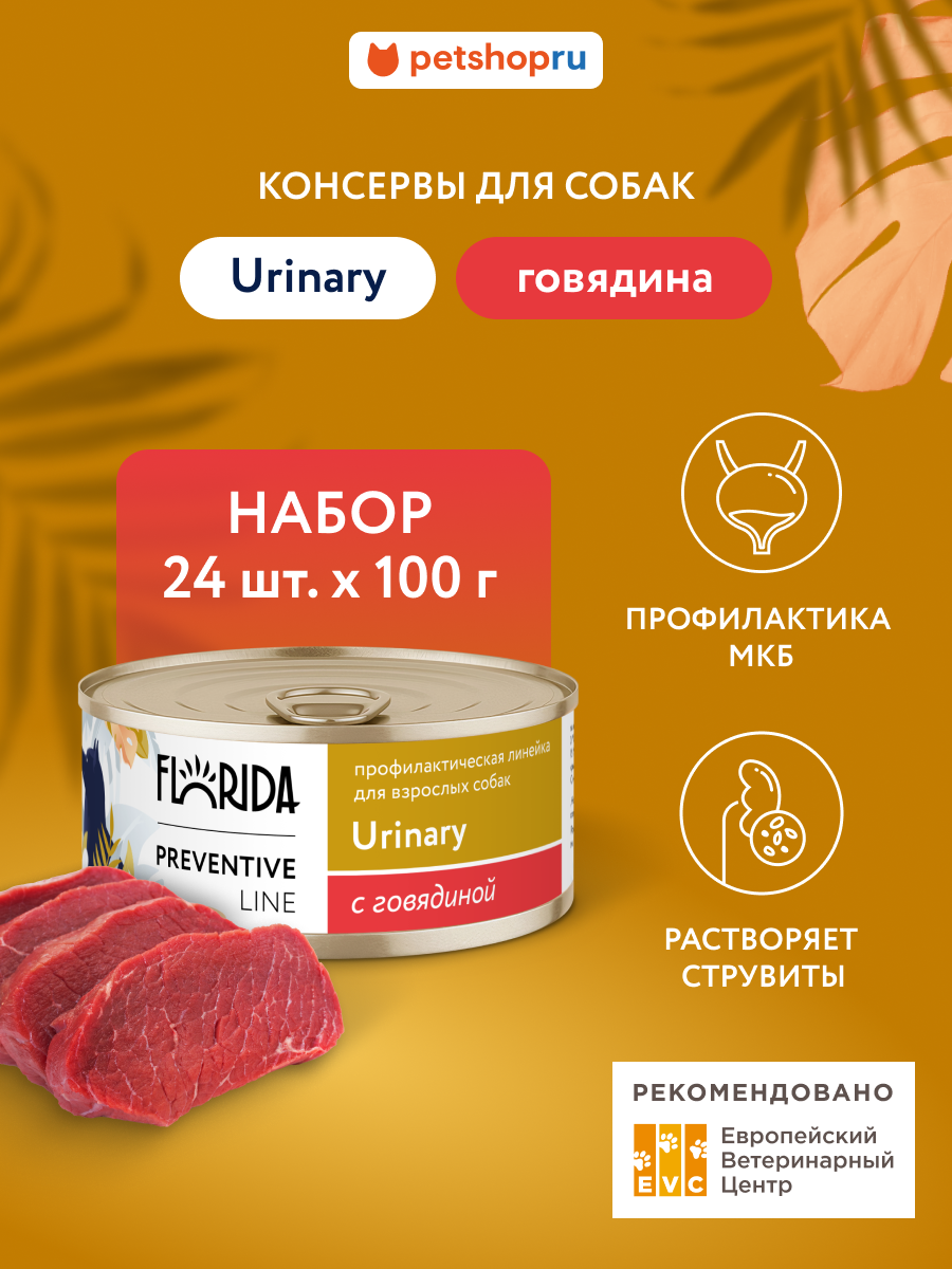 Florida Preventive Line Urinary Консервы для собак для профилактики образования мочевых камней, с говядиной. Влажный, ветеринарный, диетический корм, 24 шт по 100 г: сравнение цен, характеристики, фото, актуальное наличие и цены.