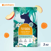 Florida Chicken and AppleВ - сухой корм супер-премиум-класса с курицей и яблоком взрослых собак крупных пород. Сбалансированное полнорационное питание, способствующее правильному функционированию всего организма и нормализации пищевых процессов. В В рационе кормов Florida используется только белок животного происхождения.