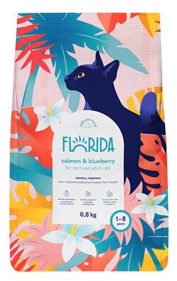Купить FLORIDA Сухой корм для взрослых стерилизованных кошек с лососем и черникой, 0,8 кг с доставкой по всей России. FLORIDA Сухой корм для взрослых стерилизованных кошек с лососем и черникой, 0,8 кг: сравнение цен, характеристики, фото, актуальное наличие и цены.