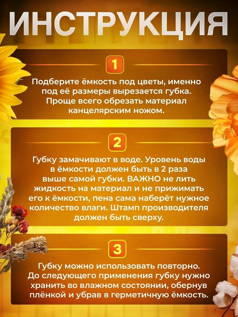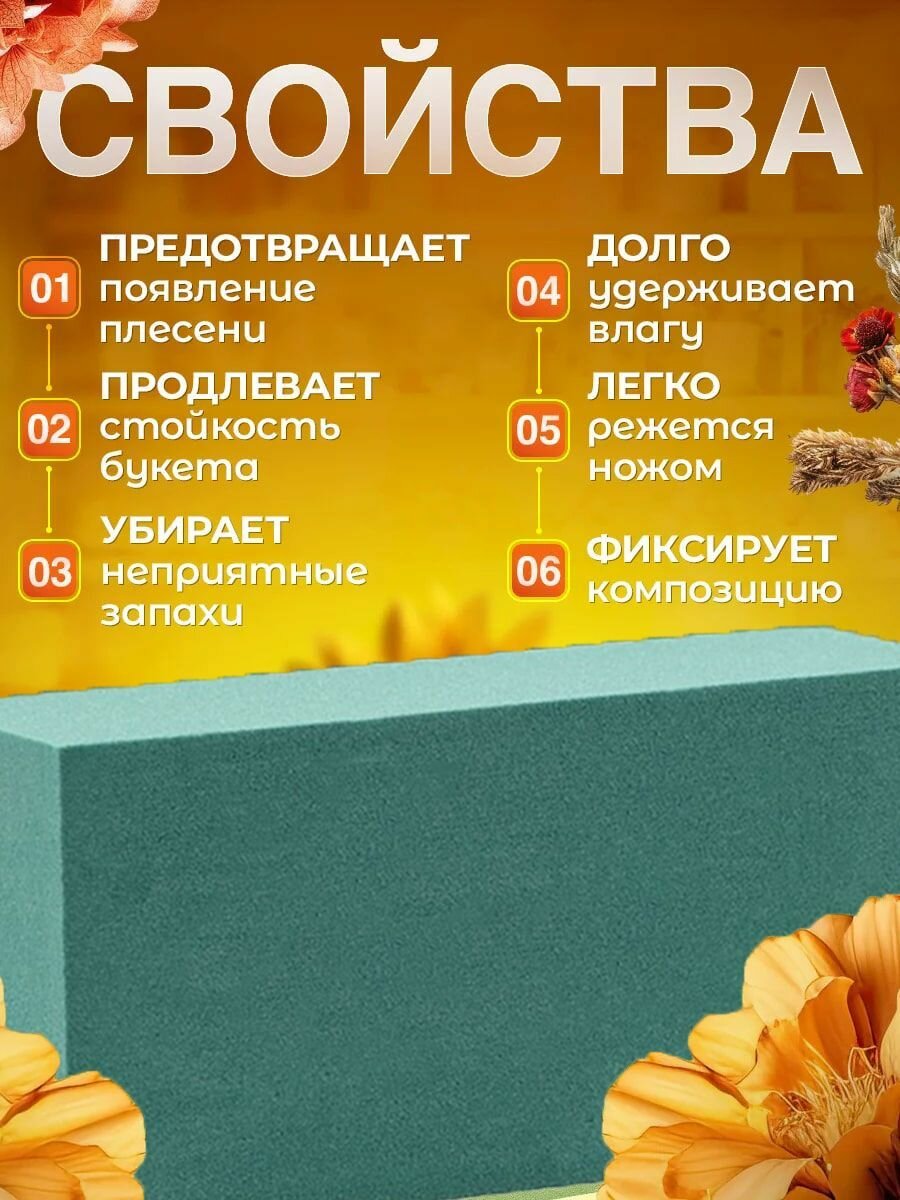 Флористическая губка пиафлор используется как база для создания цветочных композиций. Упаковано в коробку, не деформируется при транспортировке, не осыпается. Губка флористическая для цветов легко режется ножом, ей можно придать форму сосуда: кашпо или вазы, в котором вы будете размещать цветочную композицию. Опустите губку для цветов в воду без чрезмерных усилий, разместите в герметичной емкости во избежание протекания, далее поливайте водой по мере подсыхания. Пиафлор впитывает и долго удерживает воду, питает цветы, продлевая срок жизни композиций из живых цветов. Флористическая пена форма кирпичики, пропитана специальными добавками, которые продлевают жизнь цветку и антибактериальными веществами, благодаря которым в ней поддерживается антисептическая среда, препятствующая образованию плесени, грибков. Флористическая губка кирпич, губка для живых цветов, губки, пенополистирол, для губки, пена губка оазис для цветов, губка для цветов флористическая, пена флористическая, флористика, пиафлор пена, для рукоделия аксессуары, оазис флористический, коробка для цветов с губкой, товары для флористики, губка для букетов, оазис флористическая губка, флористическая упаковка. Флористическая пена Victoria для живых цветов.