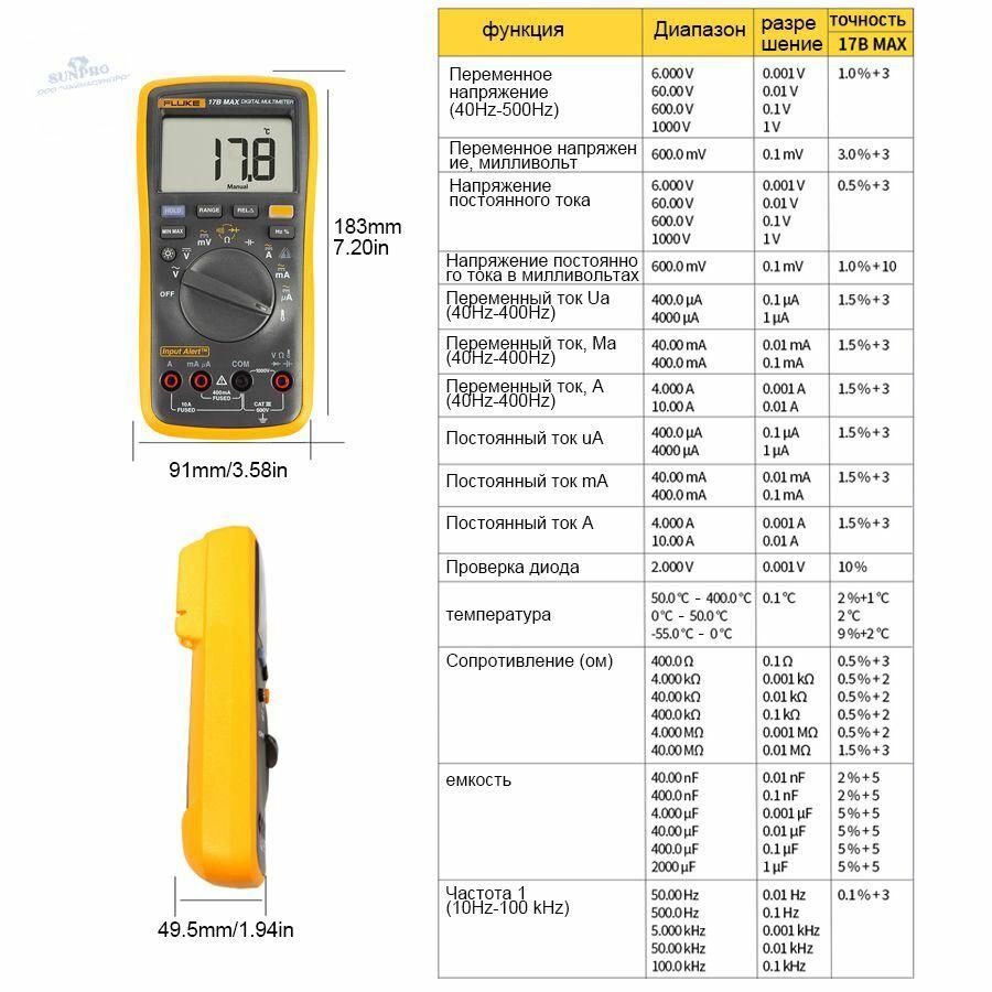 Fluke Цифровой мультиметр 1000V, Щуп токоизмерительный, 17B MAX-01SUNPRO: сравнение цен, характеристики, фото, актуальное наличие и цены.