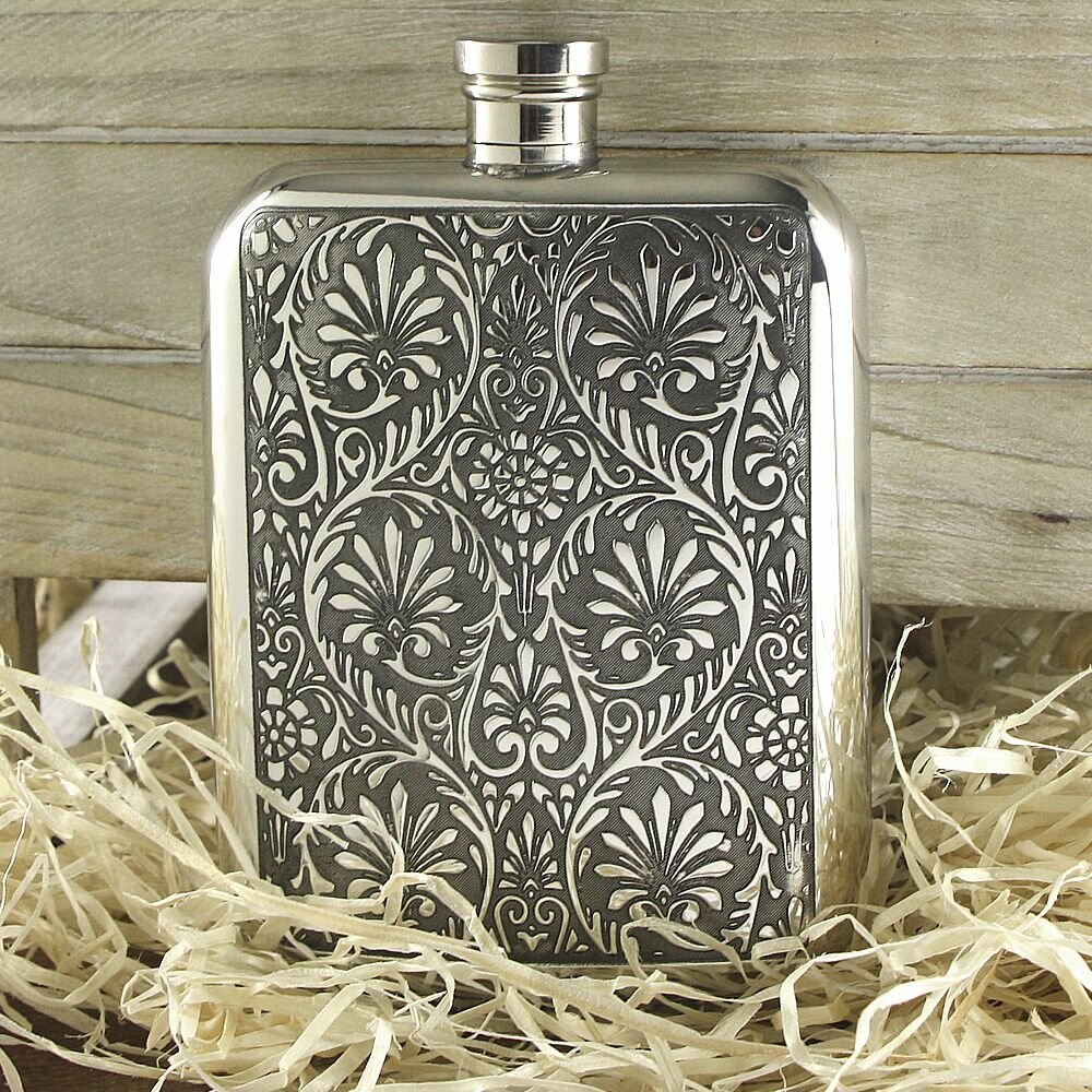Фляжка изготовлена в Великобритании из британского пьютера (сплава, который абсолютно не содержит свинца и безопасен для здоровья). Объем 180 мл.