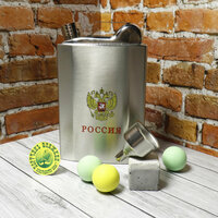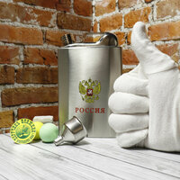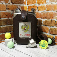 Колпачок фляги выполнен из металла. На обеих сторонах можно увидеть надпись "Россия" и символику.