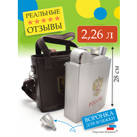 Чехол из качественной искусственной кожи с ремешком и ручками. На чехле и на фляжке символика России.