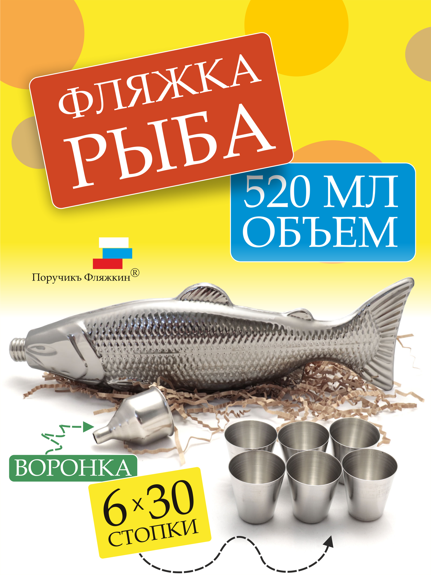Объем фляжки "Рыба" 18 унций или, примерно, 522 мл.
