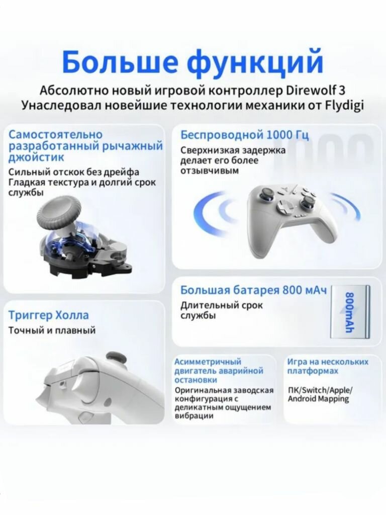 FLYDIGI Геймпад Direwolf 3 Беспроводной Геймпады для ПК, Nintendo Switch, Android, IOS, Проводной, Bluetooth, белый: сравнение цен, характеристики, фото, актуальное наличие и цены.
