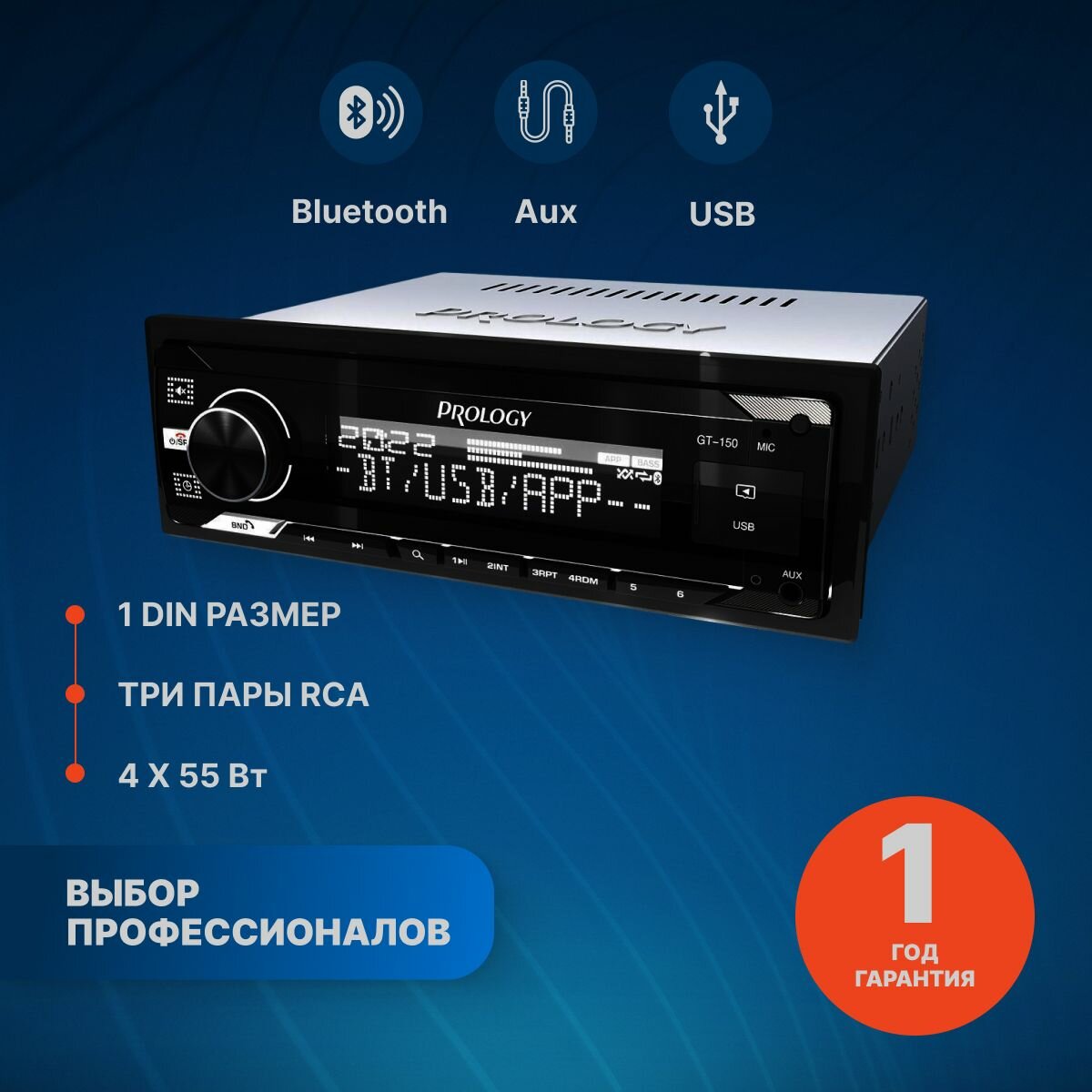 PROLOGY GT-150 — FM SD/USB ресивер с поддержкой беспроводной технологии Bluetooth — это недорогая современная и широкофункциональная автомагнитола стандартного установочного размера 1DIN с минимальной монтажной глубиной в 85 мм.