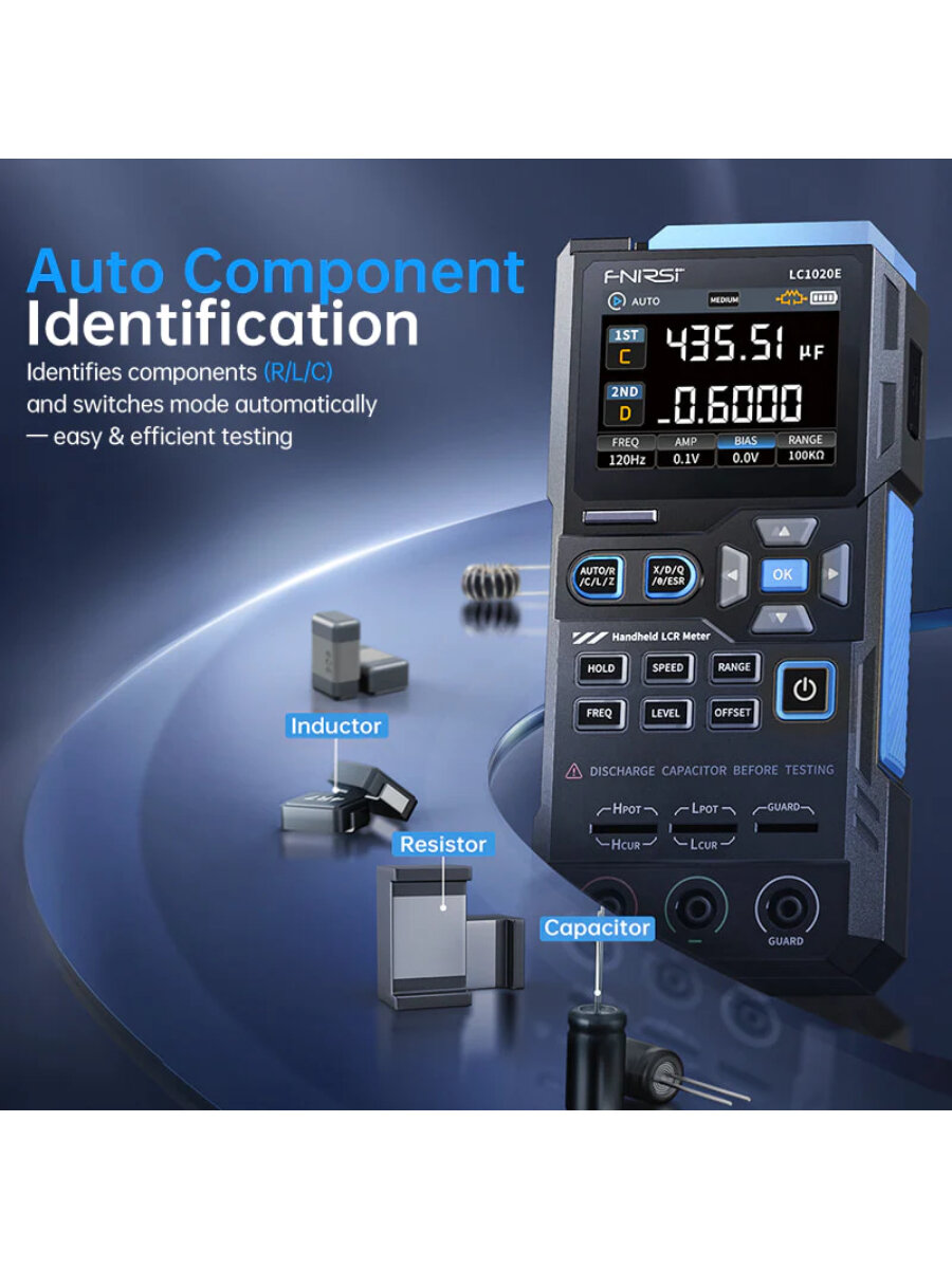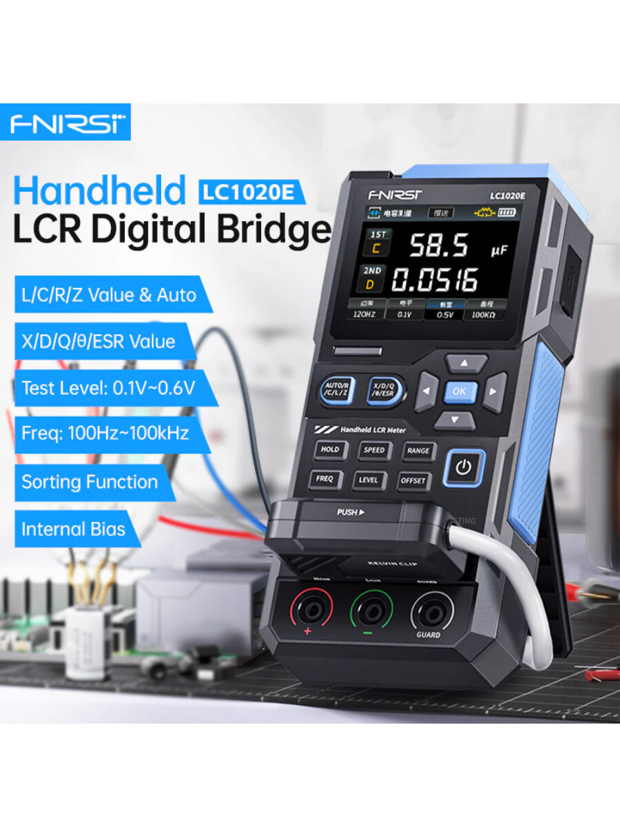 FNIRSI LC1020E – компактный LCR/ESR-тестер для быстрой диагностики электронных компонентов.