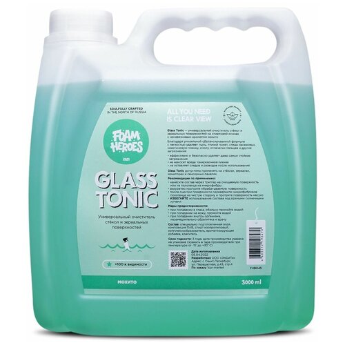 Glass Tonic – универсальный очиститель стеклянных и зеркальных поверхностей на спиртовой основе с ненавязчивым ароматом мохито, объемом 3 литра