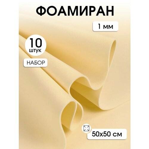 Набор фоамирана 1 мм. В наборе 10 листов размером 50х50 см, цвет в ассортименте. Отличается прекрасной пластичностью. Предназначена для хобби, творчества и рукоделия. Применяется для создания флористического декора, бижутерии и украшений, свадебных композиций, для создания цветов, аппликаций, сувениров, 3D аппликаций, поделок, предметов интерьера, от мелких изделий до ростовых цветов, элементов декора, элементов подарочных упаковок и поздравительных открыток. Из него делают кукол, реалистичных птиц и животных. Создают объёмные картины, имитируя работы, выполненные из кожи, дерева, металла. Фоамиран нашел своё применение и в скрапбукинге. Этот материал не токсичен, безопасен для детского творчества. Эластичный, гибкий, гладкий, легкий, практичный, экономичны. Имеет высокую износостойкость, легко режется, удобен в работе, представлен в широкой цветовой гамме, тактильно очень приятен, хорошо держит форму в готовых изделиях. Крепится с помощью степлера, ниток или специального клея.