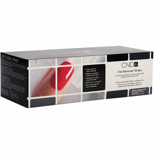 Фольга CND для снятия покрытия - уникальный, эстетически приятный и профессиональный способ аккуратно и легко снять покрытие CND Shellac. Фольга фиксируется благодаря встроенным наклейкам и воздействует только на зону маникюра, давая тем самым клиентке свободу выпить кофе, почитать журнал или просмотреть важные уведомления во время процедуры. Фольга для удаления покрытия CND Shellac также можно использовать для удаления легкоудаляемого геля Brisa Litе Removable Smoothing Gel.