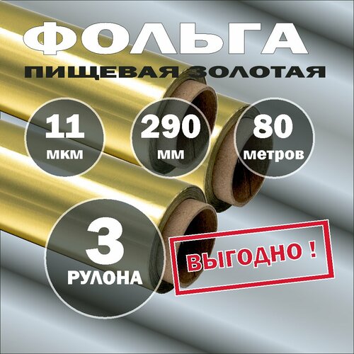 Купить Фольга пищевая золотая 11мкм, 290мм, честные 80 метров 3 рулона с доставкой по всей России. Фольга пищевая золотая 11мкм, 290мм, честные 80 метров 3 рулона: сравнение цен, характеристики, фото, актуальное наличие и цены.