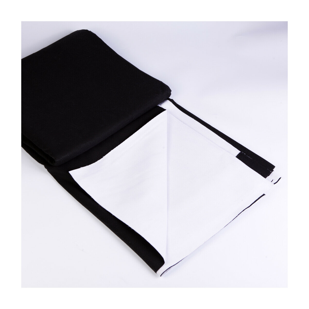 Fotokvant BG-3030D Black Whit - плотный двусторонний тканевый фон 3,0х3,0 метра. Цвета фона - черный и белый, те цвета которые наиболее часто востребованы в фотостудии. Материал полотна плотный, равномерно прокрашен со всех сторон, не линяет, не облезает при многократной стирке. Фон отличается хорошим качеством и высокой плотностью хлопчатобумажной ткани, края фона обработаны. С одной стороны у фона прошит рукав-кулиса для установки на горизонтальную штангу.