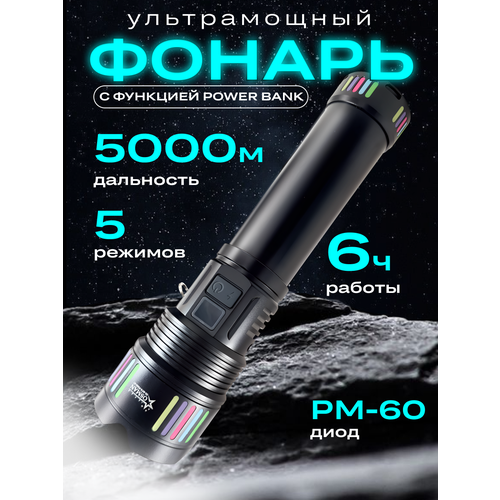 Фонарь аккумуляторный OS-6077, сверхмощный, светодиодный, лазерный, с подзарядкой