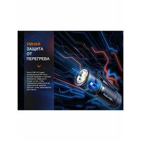 Комплектация: модель фонаря Fenix E18R V2.0, литий-ионный аккумулятор Fenix ARB-L16-700P, кабель для зарядки USB Type-C, ремешок, запасное уплотнительное кольцо, листовка, инструкция к применению, талон гарантии.