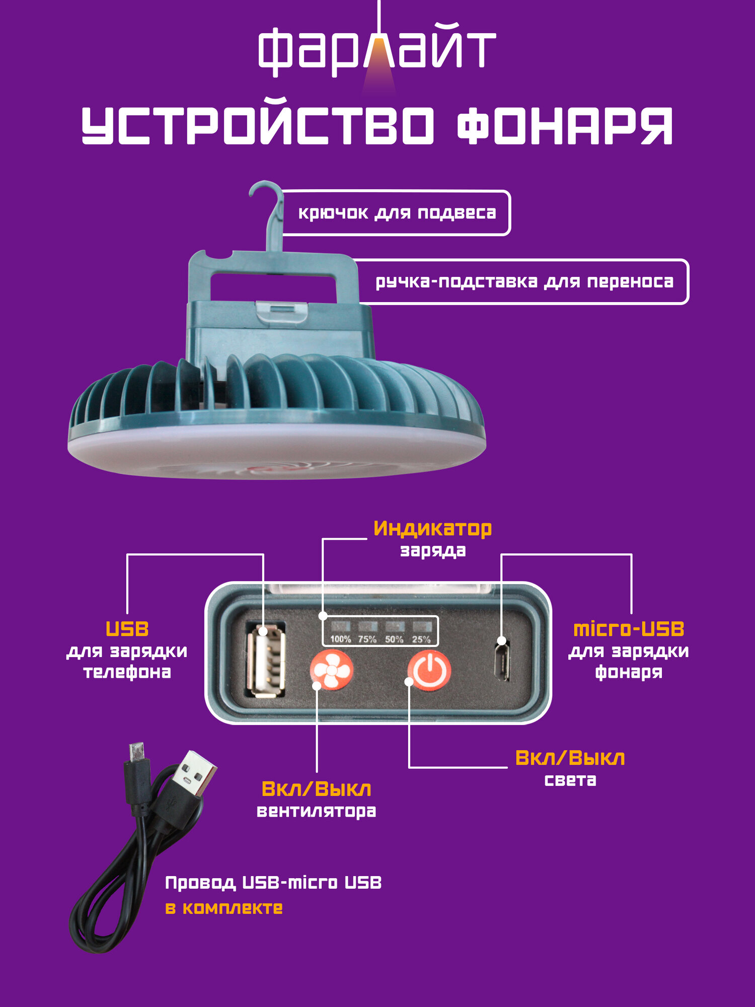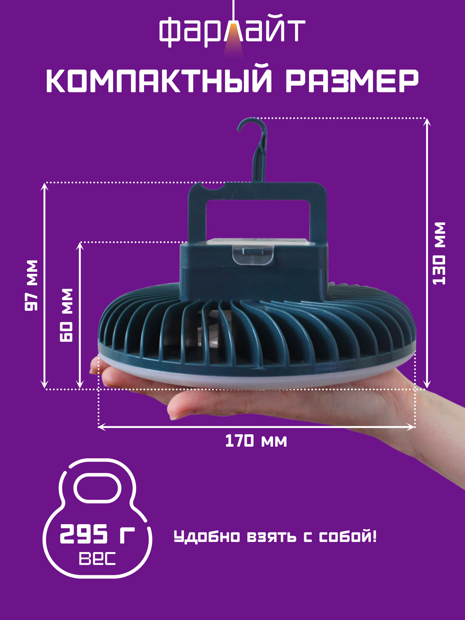 Фонарь кемпинговый на магните, с вентилятором, 450лм, 6500К, USB, 2 режима яркости, Фарлайт: сравнение цен, характеристики, фото, актуальное наличие и цены.
