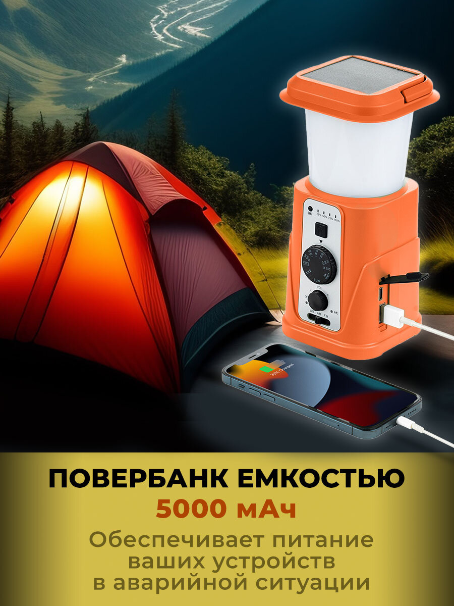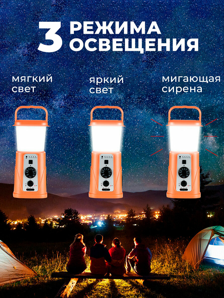 Фонарь кемпинговый на солнечных батареях с радио и динамо-машиной / радиоприемник для туризма с лампой и повербанком / оранжевый: сравнение цен, характеристики, фото, актуальное наличие и цены.