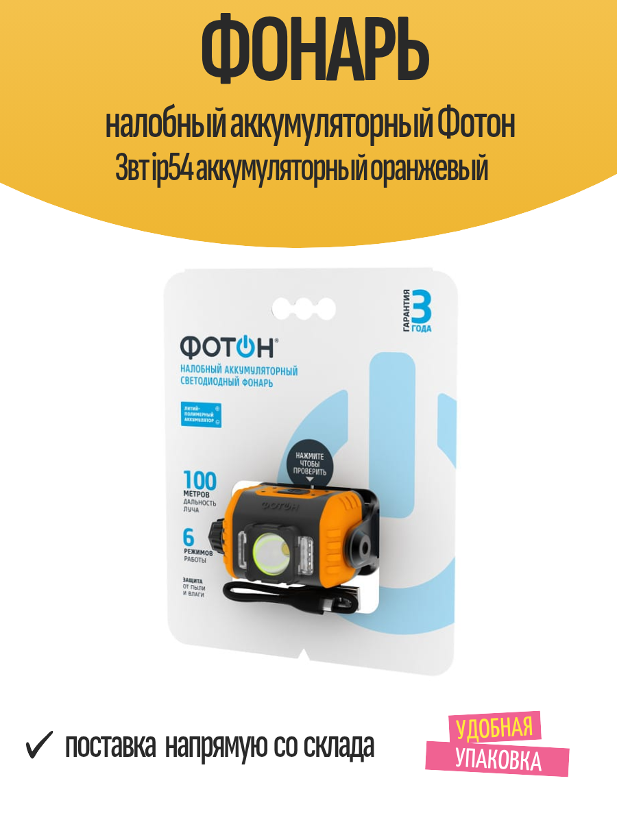 Купить Фонарь налобный аккумуляторный Фотон 3вт ip54 аккумуляторный оранжевый с доставкой по всей России. Фонарь налобный аккумуляторный Фотон 3вт ip54 аккумуляторный оранжевый: сравнение цен, характеристики, фото, актуальное наличие и цены.