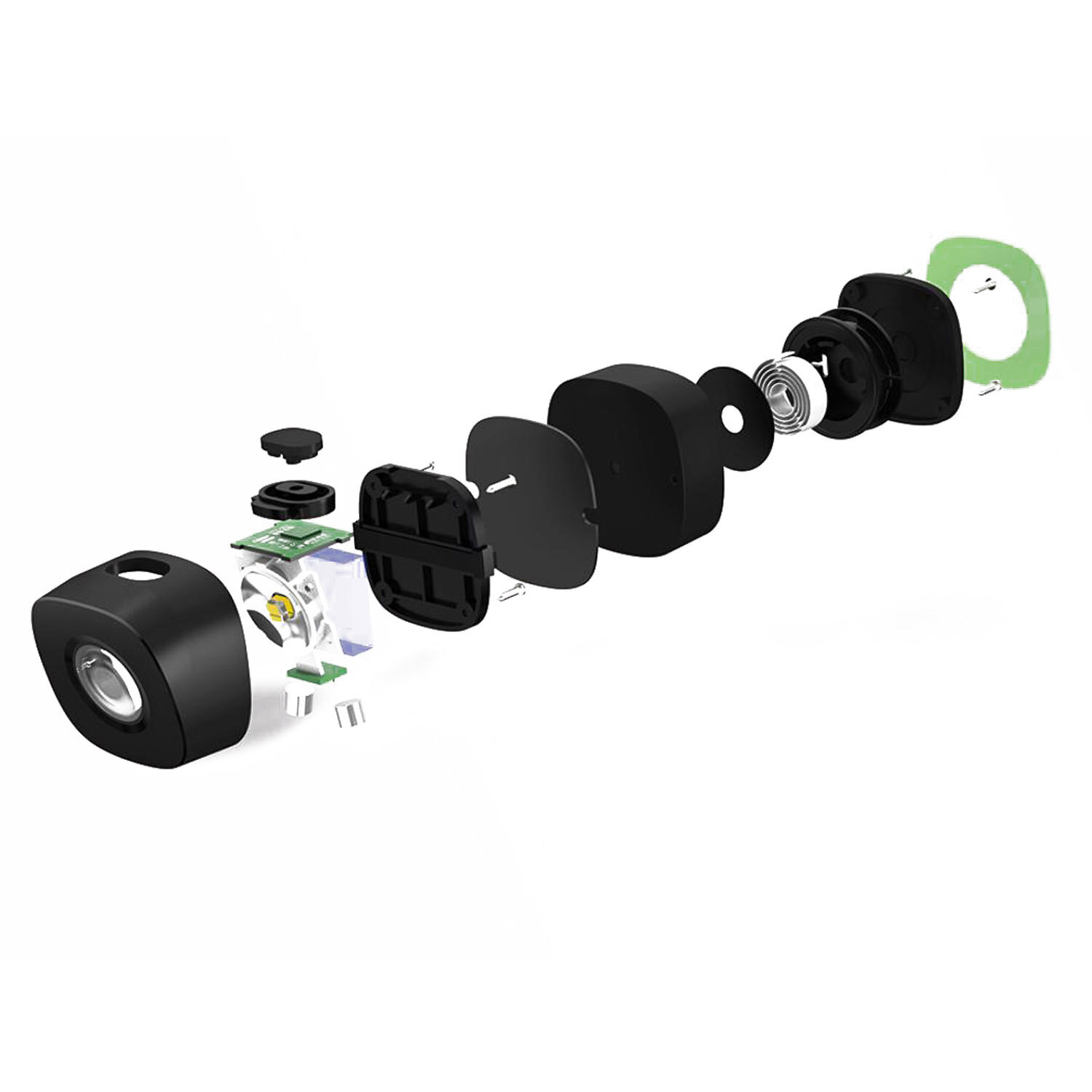 Основные элементы походного фонарика изготовлены из прочного АБС-пластика, который отличается высокой износоустойчивостью. А на задней части ленты находится яркая флуоресцентная наклейка, которая хорошо заметна для других участников движения и позволяет избежать многих аварийных ситуаций.