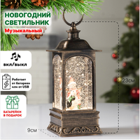 Фонарь новогодний светильник светодиодный интерьерный музыкальный с эффектом снегопада и подсветкой
