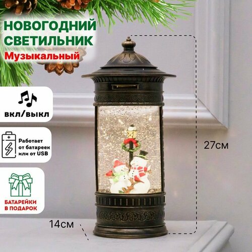 Фонарь новогодний светильник светодиодный интерьерный музыкальный с эффектом снегопада и подсветкой