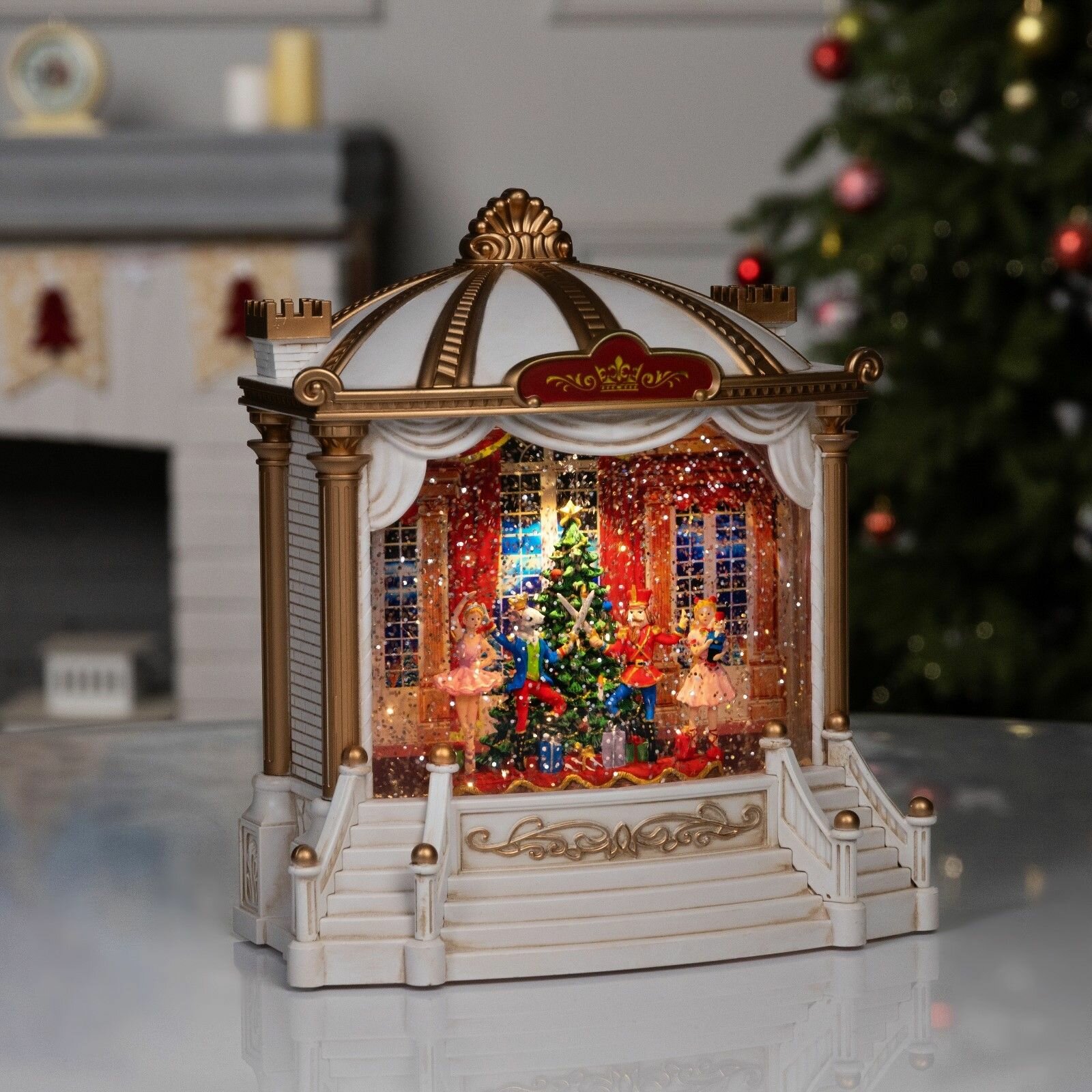 Купить Фонарь новогодний светильник светодиодный интерьерный музыкальный с эффектом снегопада и подсветкой Сказочный театр с доставкой по всей России.