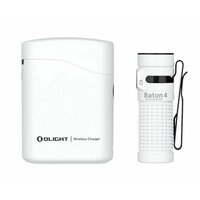 Перезаряжаемый светодиодный фонарь Olight Baton 4 Edition White Premium Edition от компании Олайт, поставляется c портативным беспроводным зарядным устройством-чехлом с зарядкой Type-C USB. Специально изготовленный зарядный чехол включает в себя встроенный Li-ion аккумулятор 21700 3,7 В. емкостью 5000 мАч, позволяющий полностью зарядить Baton 4 до 3,7 раза Фонарь использует светодиод диод Luminus SST-40, максимальная мощностью светового потока составляет 1300 люмен и дальностью 170 метров. Цветная индикация заряда аккумуляторной батареи оповестит вас о необходимости зарядить фонарь.