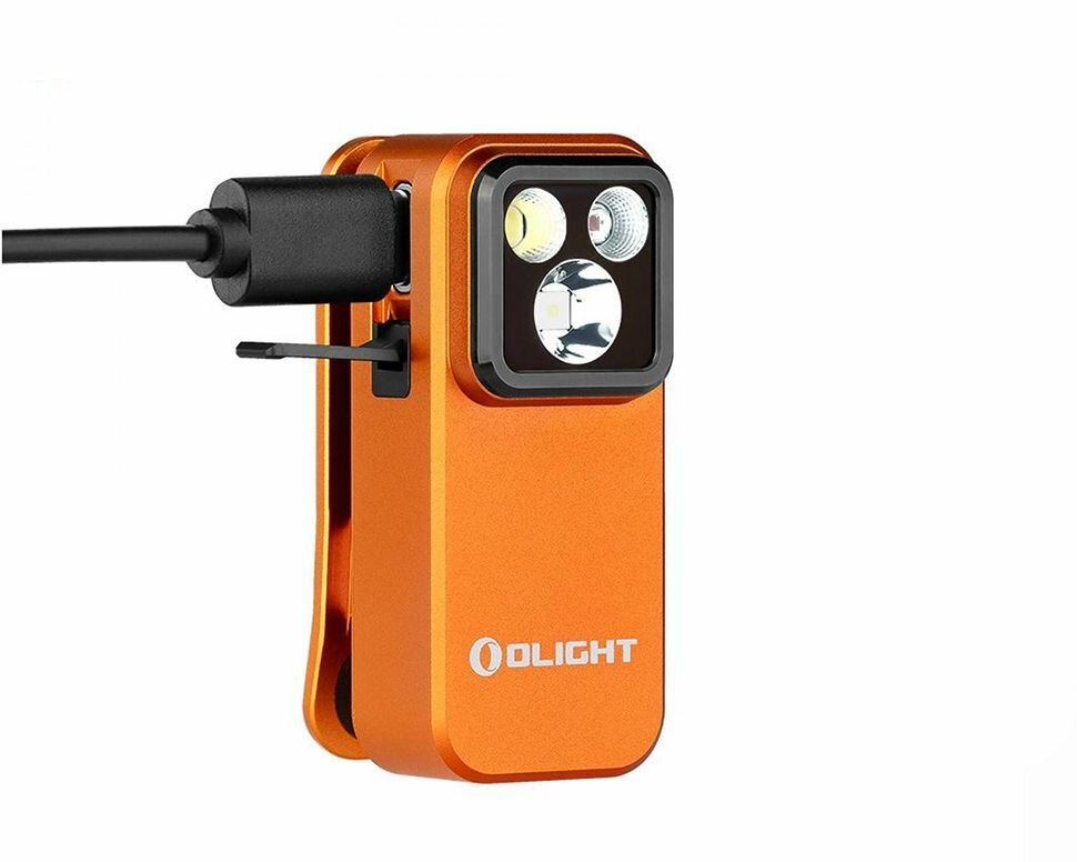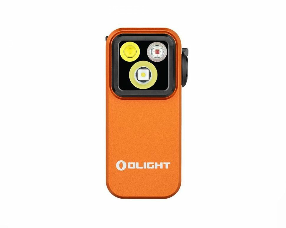 Компактный и универсальный EDC фонарь Olight Oclip Pro Orange с прищепкой для зажима, который позволяет с легкостью крепить его к одежде или рюкзаку, подвешивать или прикреплять его к железным объектам за счет встроенного магнита в клипсе фонаря. Три источника света в фонаре позволяет использовать его в разнообразных ситуациях, красный и белый светодиоды сфокусированного и рассеянного света помогут вам осуществлять ночные прогулки, выгул собаки, дополнительное освещение дома, оповещение, габаритный сигнал для велосипеда или для кемпинга. Красный свет наиболее эффективен для сохранения ночного видения. В экстренных случаях красные вспышки используют как сигнализацию.         Удобный дизайн пользовательского интерфейса, переключение режимов осуществляется переключением поворотного селектора, а включение нажимной кнопкой. Индикация заряда аккумуляторной батареи в центре кнопки включения всегда напоминает об уровне заряда.
