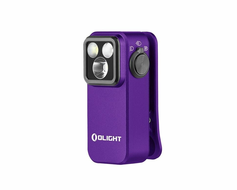 Компактный и универсальный EDC фонарь Olight Oclip Pro Purple с прищепкой для зажима, который позволяет с легкостью крепить его к одежде или рюкзаку, подвешивать или прикреплять его к железным объектам за счет встроенного магнита в клипсе фонаря. Три источника света в фонаре позволяет использовать его в разнообразных ситуациях, красный и белый светодиоды сфокусированного и рассеянного света помогут вам осуществлять ночные прогулки, выгул собаки, дополнительное освещение дома, оповещение, габаритный сигнал для велосипеда или для кемпинга. Красный свет наиболее эффективен для сохранения ночного видения. В экстренных случаях красные вспышки используют как сигнализацию.