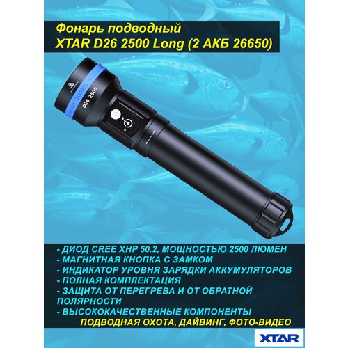 Купить Фонарь подводный XTAR D26 Long, водонепроницаемость до 100м, 2500лм с доставкой по всей России. Фонарь подводный XTAR D26 Long, водонепроницаемость до 100м, 2500лм: сравнение цен, характеристики, фото, актуальное наличие и цены.