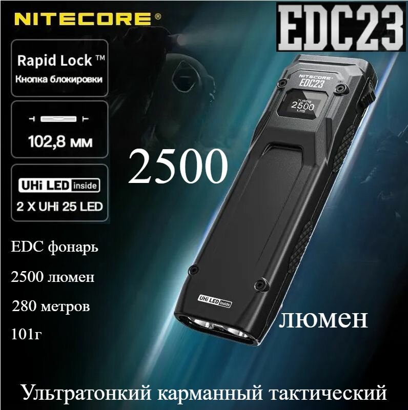 Купить Фонарь-прожектор Nitecore EDC23, 25 Вт, 280м, 39ч, влагозащита с доставкой по всей России. Фонарь-прожектор Nitecore EDC23, 25 Вт, 280м, 39ч, влагозащита: сравнение цен, характеристики, фото, актуальное наличие и цены.