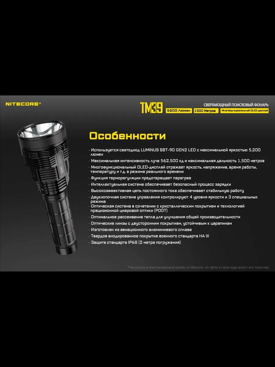 Фонарь прожектор аккумуляторный Niteсоre TM39, 5200 ЛМ, 19420: сравнение цен, характеристики, фото, актуальное наличие и цены.