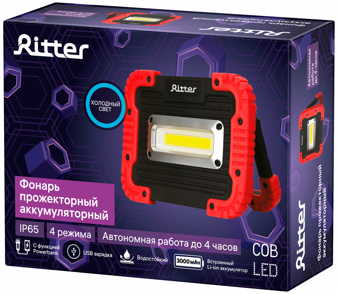Купить Фонарь прожекторный Ritter аккумуляторный, светодиодный, четыре режима работы, функция powerbank, 15Вт, 3000мАч, 1100Лм, IP65 с доставкой по всей России. Фонарь прожекторный Ritter аккумуляторный, светодиодный, четыре режима работы, функция powerbank, 15Вт, 3000мАч, 1100Лм, IP65: сравнение цен, характеристики, фото, актуальное наличие и цены.