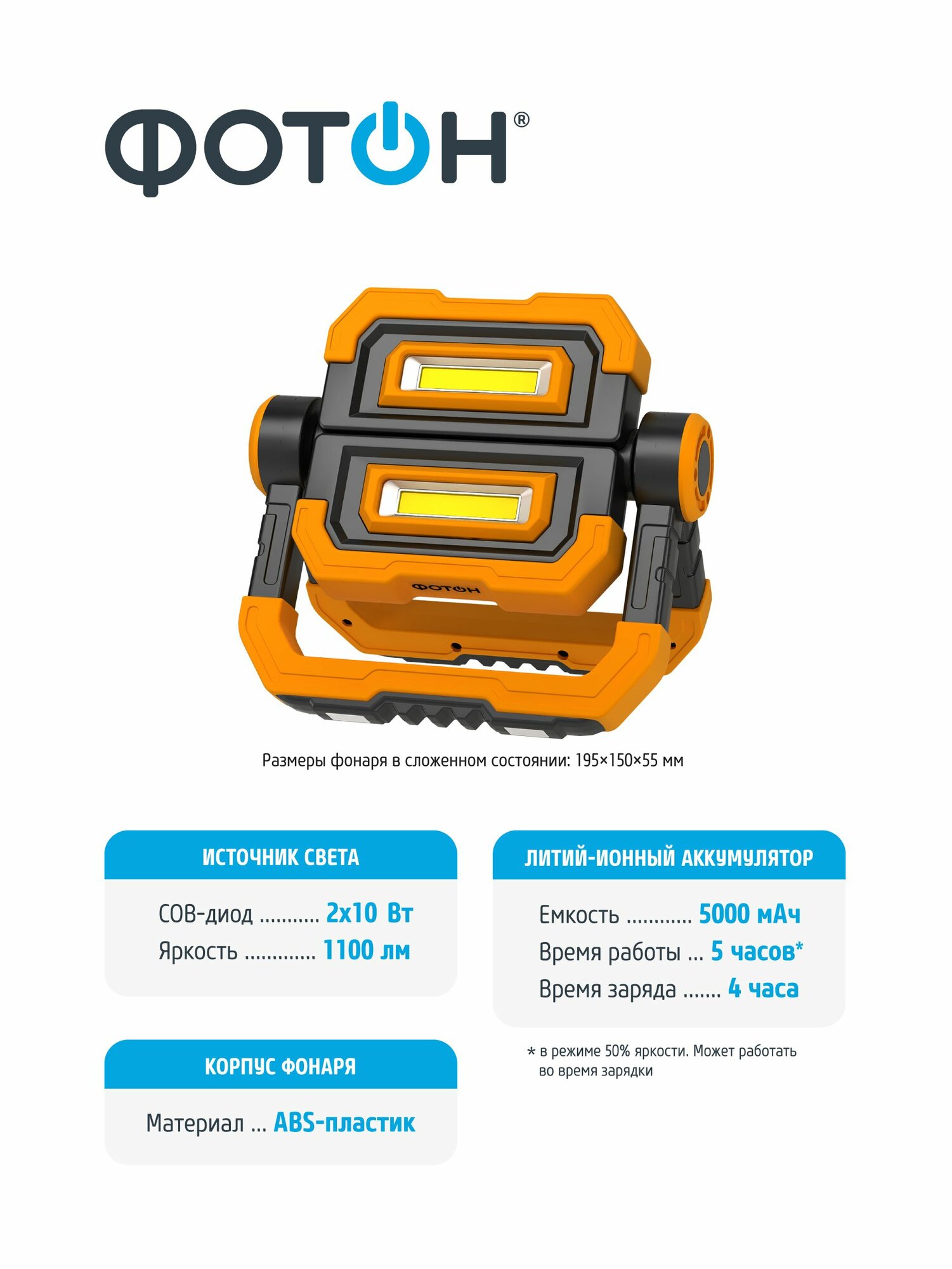 Купить Фонарь рабочий прожектор аккумуляторный светодиодный ФОТОН WPВ-7800 с доставкой по всей России. Фонарь рабочий прожектор аккумуляторный светодиодный ФОТОН WPВ-7800: сравнение цен, характеристики, фото, актуальное наличие и цены.