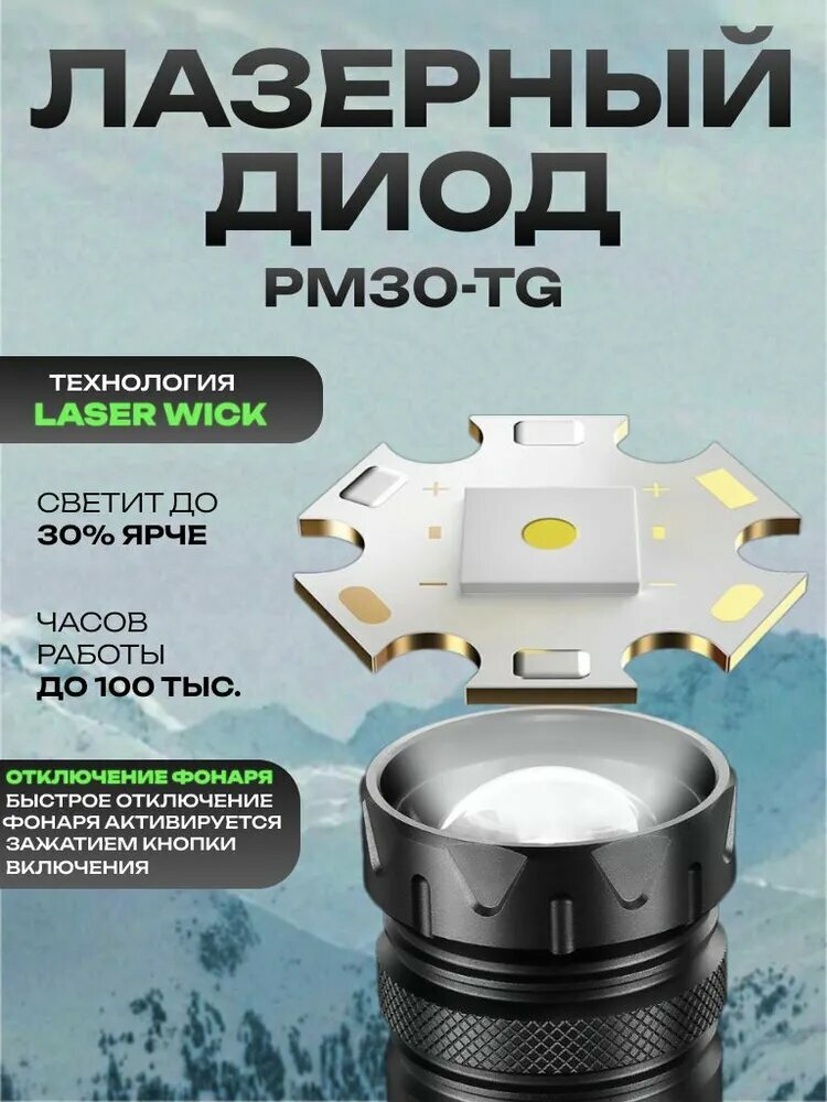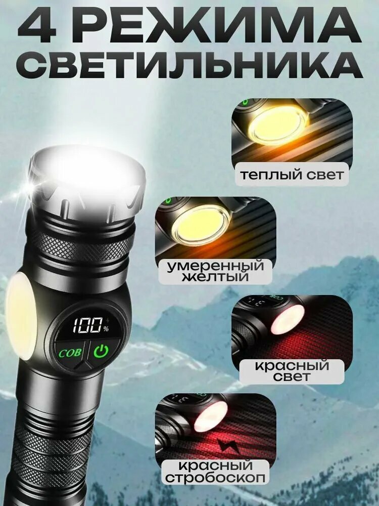Ручной фонарь для каждого! Представляем ручной аккумуляторный светодиодный фонарь с лазером - это ваш надёжный помощник в любых условиях! Наш спортивный фонарик — выбор для тех, кто ценит качество, мощность и удобство в туризме. Мощный источник света на природе. Мощный лазерный диод! Обеспечивает яркое и равномерное освещение, что делает его идеальным для использования в тёмное время суток. Он работает от аккумулятора, что позволяет использовать его многократно без необходимости покупки новых батареек. Подходит для различных видов активного отдыха: походов, кемпинга, охоты и рыбалки. Удобный дисплейКомпактный размер. Маленький и лёгкий, его удобно носить с собой в кармане или рюкзаке. Оснащен лазерным указателем и другими полезными функциями, а так же в нем есть зум и Power Bank. С его помощью можно подзарядить свой смартфон через USB разъем. Основной светНа фонаре 5 основных режимов свечения, которые включают в себя: - сверхъяркий свет - стандартный свет - умеренный свет - белый стробоскоп - режим SOS сигнала Дополнительный светНа фонаре также присутствуют дополнительные режимы, которые включают в себя: - теплый желтый свет - желтый умеренный - красный свет - красный стробоскоп Показать полностью КомплектацияАккумулятор, дополнительный переходник на мизинчиковые батарейки, type-C провод для зарядки.