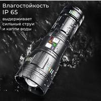 | Особенности | влагозащита, встроенный power bank, дальний свет, дневной белый свет, индикация заряда, маячок, мигание, регулировка угла свечения, ударопрочный корпус, холодный белый свет |