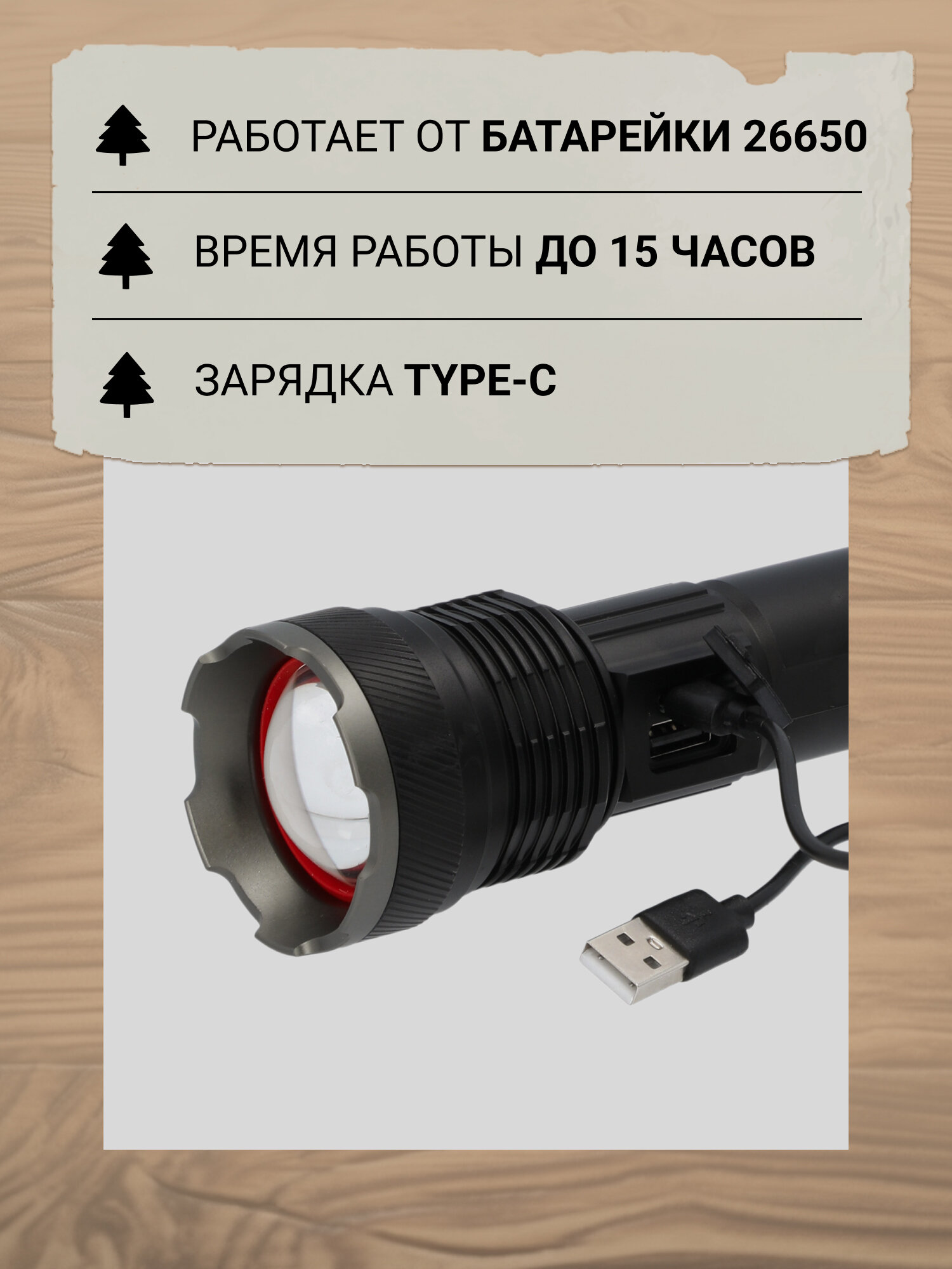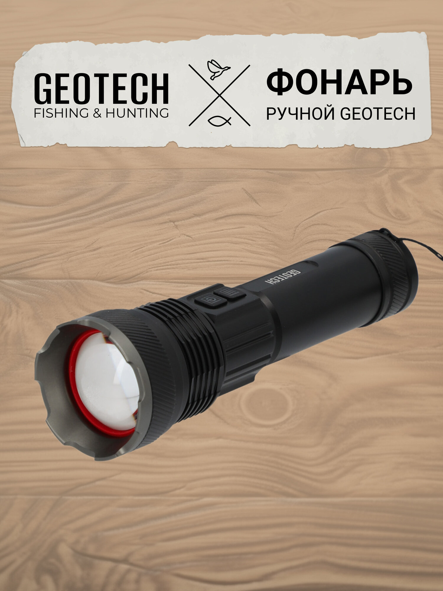 Ручной фонарь мощностью 850 люмен от Geotech — отличный выбор как любителей, так и профессионалов рыбалки и охоты. 4 режимы работы — низкий, средний, высокий и супервысокий — позволят выбрать наиболее оптимальный вид освещения, а функция масштабирования — отрегулировать фокус луча в зависимости от предпочтений. Дальность светового потока составляет 800 м — что достаточно для основных манипуляций во время охоты или рыбалки. Работает от аккумуляторной батареи 26650 (в комплект не входит), зарядка производится через разъем USB Type-C (кабель в комплекте). Фонарь надежно защищен от влаги, класс защиты — IPX5.