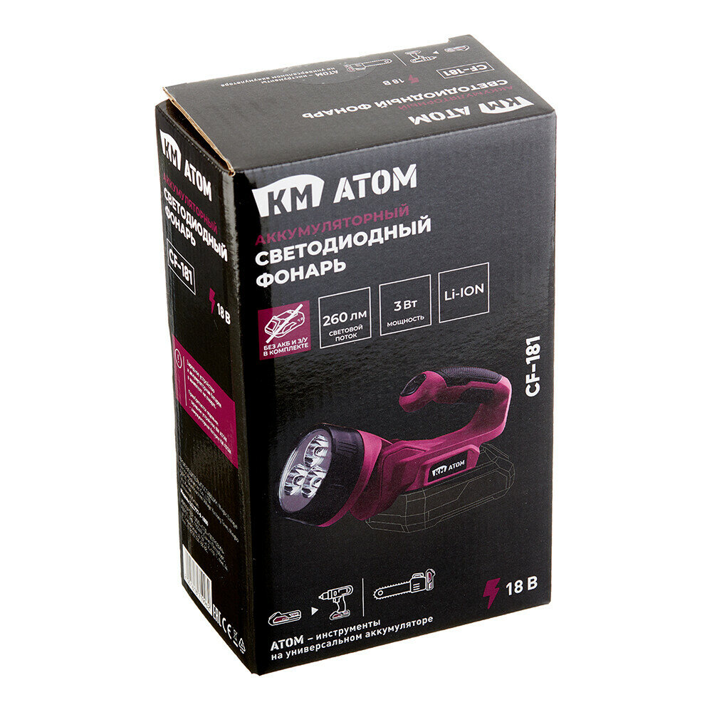 Купить Фонарь ручной КМ АТОМ светодиодный 3 LED 3 Вт аккумуляторный Li-Ion пластик без АКБ и ЗУ (CF-181) с доставкой по всей России. Фонарь ручной КМ АТОМ светодиодный 3 LED 3 Вт аккумуляторный Li-Ion пластик без АКБ и ЗУ (CF-181): сравнение цен, характеристики, фото, актуальное наличие и цены.