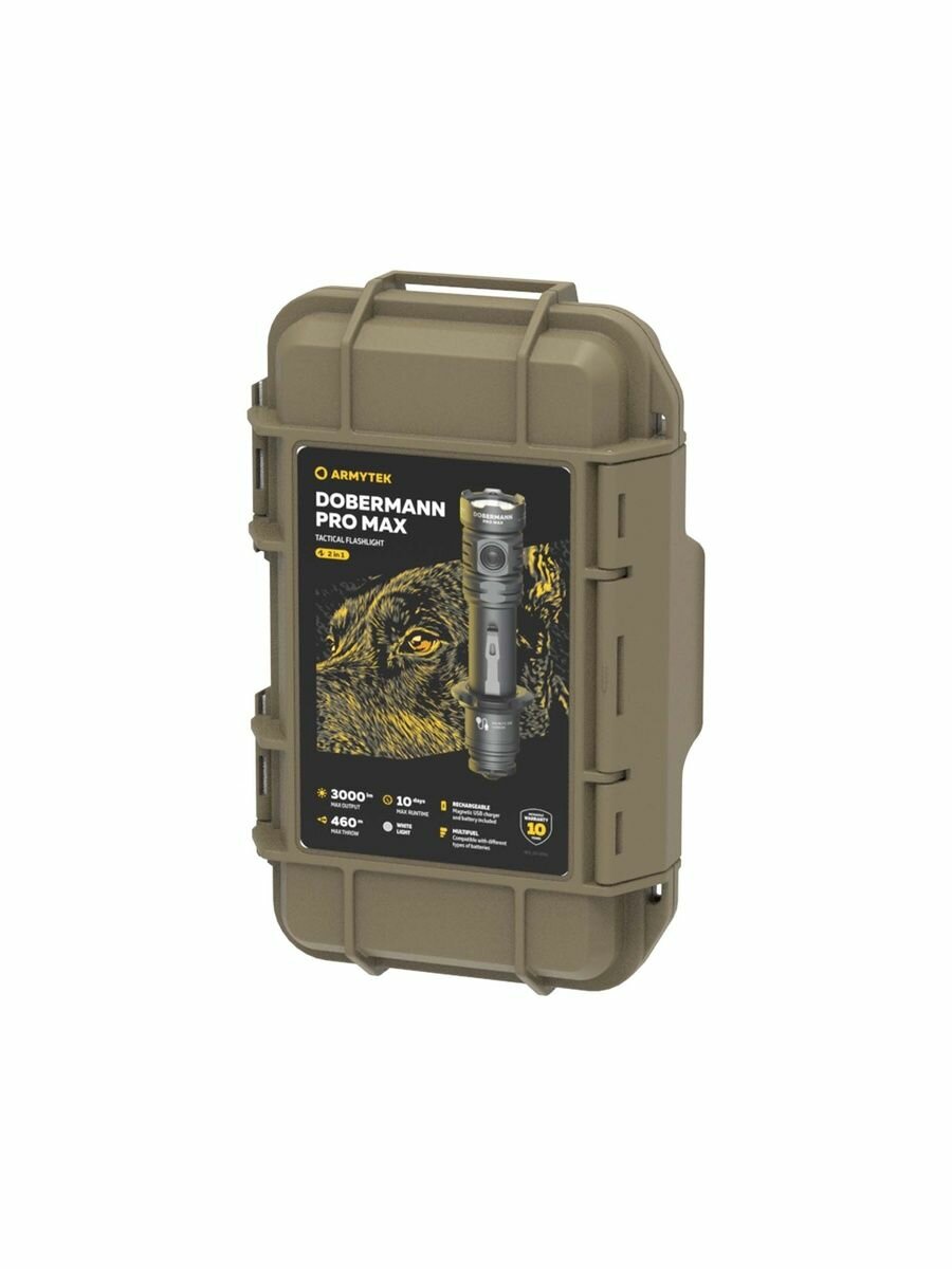 Dobermann Pro Max — это тактический фонарь в компактном корпусе с возможностью повседневного использования. Dobermann Pro Max совместим со специально разработанной магнитной выносной кнопкой и оригинальными креплениями для подствольного применения. Модель работает не только на комплектном элементе питания, но и на любом стандартном аккумуляторе 21700 Li-Ion, а также, благодаря адаптеру, на аккумуляторе 18650 Li-Ion или на двух литиевых батарейках CR123A. Вариативность элементов питания позволяет значительно повысить автономность.