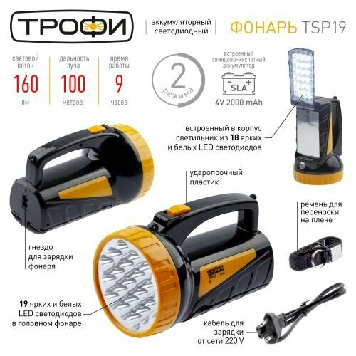 Купить Фонарь Трофи Аккум. TSP19 4V2Ah, 19+18LED, ЗУ 220V с доставкой по всей России.