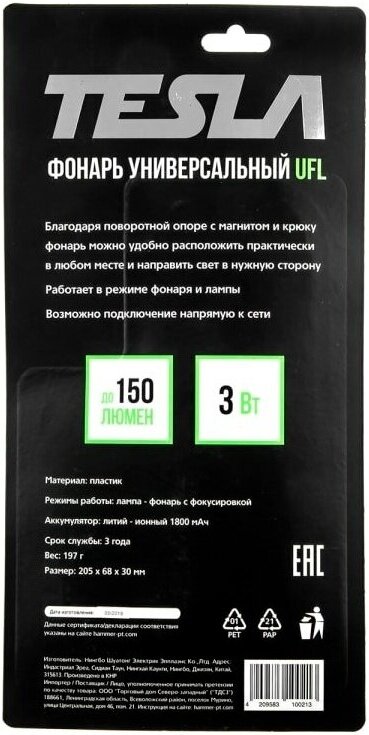 Купить Фонарь универсальный TESLA UFL, 3Вт, 150 люмен, 1800мАч с доставкой по всей России. Фонарь универсальный TESLA UFL, 3Вт, 150 люмен, 1800мАч: сравнение цен, характеристики, фото, актуальное наличие и цены.