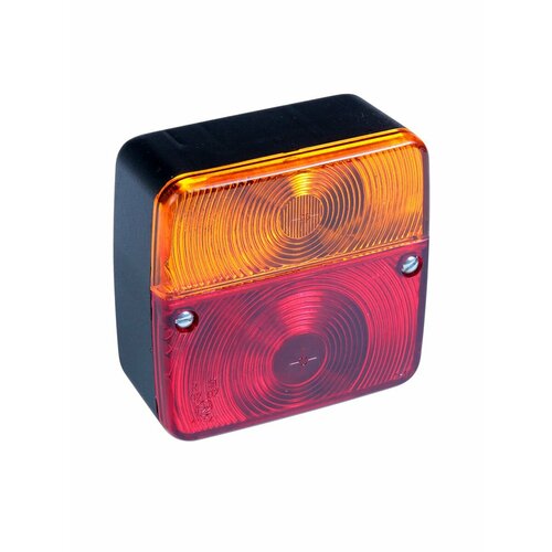 Фонарь выполнен из прочного пластика, что обеспечивает его долговечность и устойчивость к внешним воздействиям. Прямоугольная форма фары и красно-желтый цвет делают его заметным на дороге и при стоянке.