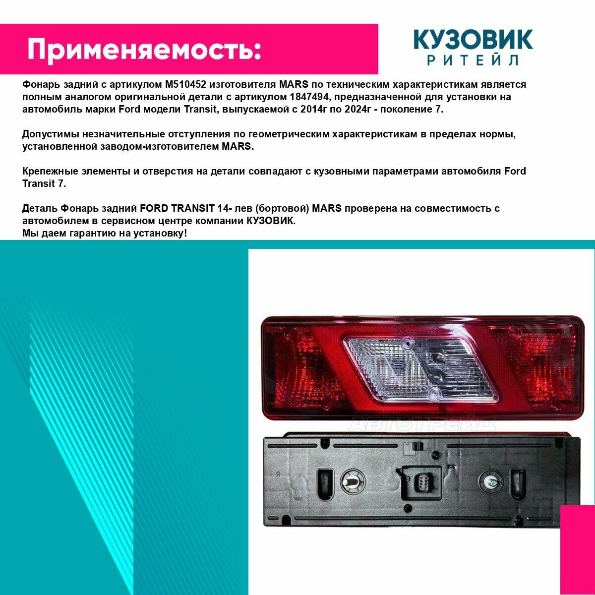 Купить Фонарь задний FORD TRANSIT 14- лев (бортовой) MARS форд Transit с доставкой по всей России. Фонарь задний FORD TRANSIT 14- лев (бортовой) MARS форд Transit: сравнение цен, характеристики, фото, актуальное наличие и цены.