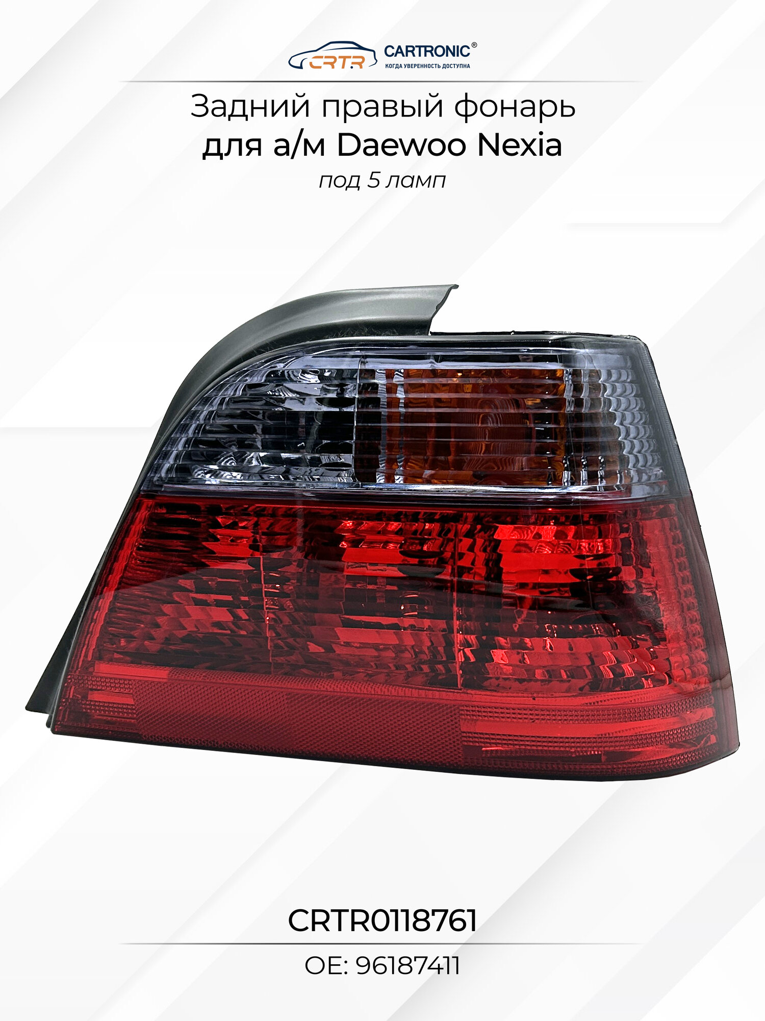 Фонарь задний правый для а/м Daewoo Nexia, под 5 ламп — Cartronic арт. CRTR0118761: сравнение цен, характеристики, фото, актуальное наличие и цены.