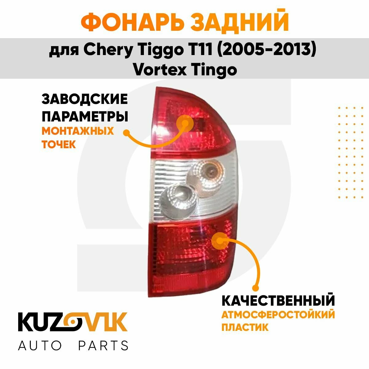 Фонарь задний правый для Чери Тигго Chery Tiggo T11 (2005-2013) Вортекс Тинго Vortex Tingo, фара задняя, новый, заводское качество, атмосферостойкий пластик: сравнение цен, характеристики, фото, актуальное наличие и цены.