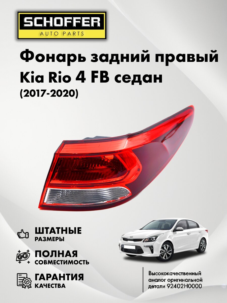 Фонарь задний правый Kia Rio седан (IV 2017-2020) № 92402-H0000 галоген, SHF-15005: сравнение цен, характеристики, фото, актуальное наличие и цены.